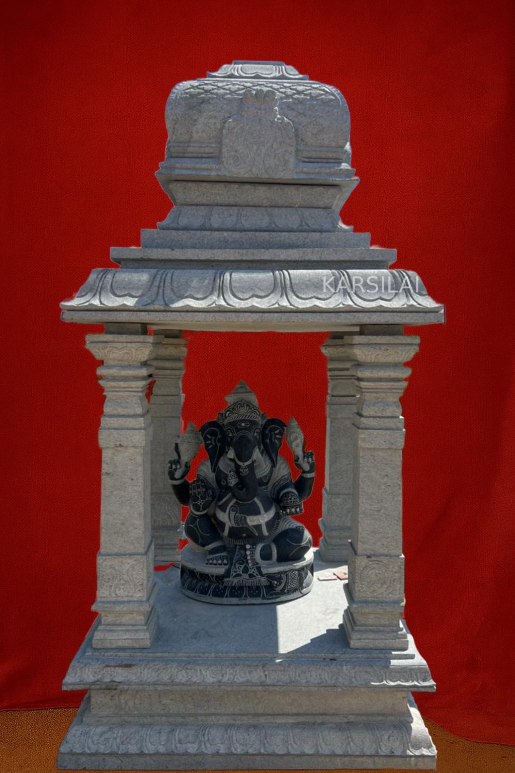 Hand-carved from premium natural stone by experienced artisans, this Mandapam reflects the timeless beauty of South Indian temple architecture. Every pillar, carving, and detail is sculpted with devotion, symbolizing stability, protection, and a respectful offering to the deity placed within.